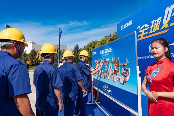 典礼上,培训班的学员代表用自己和徐工产品合影照片共同组成“XCMG”图案,见证徐工集团创建30年来持续助力客户成功、助力机手们实现人生价值!