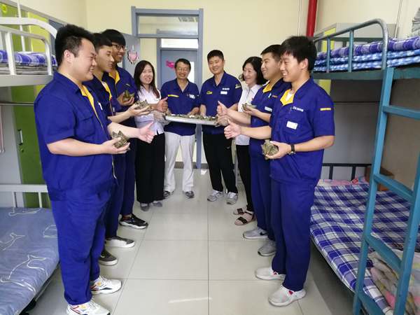 学院还为“徐工—中水蓝海精英班”三期学生送上老师们亲手包的粽子。品尝着香甜的粽子,感受学院的关爱,学生们脸上洋溢着幸福的微笑。