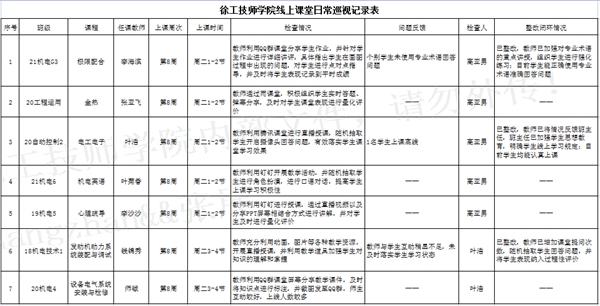从3月29日至今,三级督导详细记录教师线上教学授课内容、教学手段、课堂管理等情况,课后及时进行反馈,并提出切实可行的教学意见和建议。同时,三级督导每天提炼教师教学亮点,梳理共性和个性问题,有序开展线上教学闭环管理,确保线上教学标准不缩水、教学质量不降低。