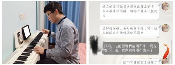 王彦博老师围绕抗疫歌曲《平凡天使》展开教学,组织学生自行品读歌词、学唱歌曲,综合运用直播连线、qq群解惑等方式,开展线上教学指导,让学生乐理上有收获、唱法上有提升、精神上有触动,沉浸歌曲共同体味“逆行者”的伟大,凝聚同心抗疫青春正能量。
