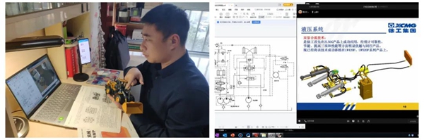 李樾老师灵活授课、就地取材,利用徐工装载机产品模型,结合装载机液压系统图纸,通过手机+电脑“双操作”模式,形象直观地讲授工程机械液压系统专业知识。他实时关注学生反馈,细致回答学生提问,让课堂在师生频繁互动中活跃起来。学生们参与课堂收获知识,沉浸课堂畅游学海。
