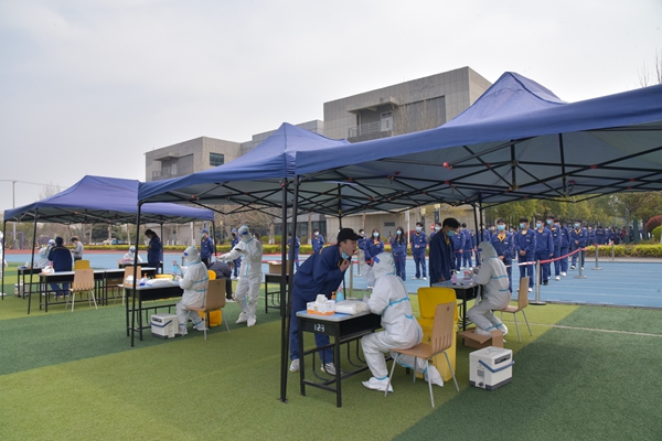“请大家提前准备好健康码、行程码和身份证!”刚给学生上完网课的张琨,没顾上喝口水,又迅速投身到社区全员核酸检测服务中去。从上午10点到下午4点,他不停地扫码登记,不厌其烦地叮嘱提醒。为了第二天上课,他含着润喉糖坚守岗位。