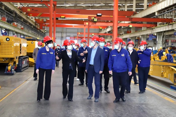 在徐工基础工程机械智能制造基地,李燕一行深入旋挖钻机、掘进机生产车间,实地了解企业生产经营、人才培养、校企合作、产教融合等工作情况,听取了校企联合成立的“徐工基础工程机械施工技术培训学院”建设情况汇报。