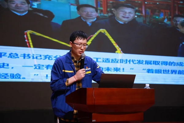 徐工矿机结构工程师苏乾坤为学生们讲授“智造第一课”,带领学院青年了解徐工机械,爱上徐工机械,用徐工智造燃起青春激情。