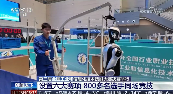 据了解,用于比赛的机器人就是全运会期间的机器人火炬手——“夸父”。在这里“夸父”要根据选手的指令模拟工厂中巡检、搬运、上下料、分拣等场景作业。