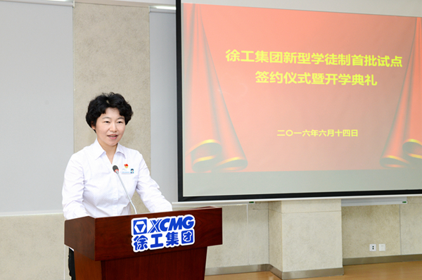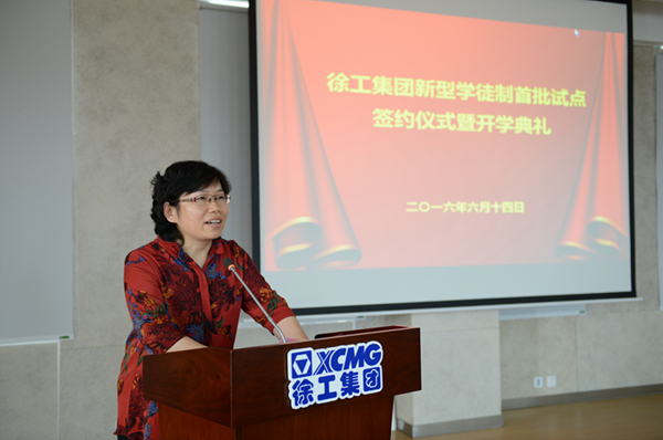 典礼上,李书记强调,徐工集团将通过“企校双制、工学一体”全新培养模式的实施,为学员们搭建一个学习培训、提高技能、互动分享、素质提升的优势平台,在学徒选拔、培养、评价考核、师资队伍建设等方面探索出一条复合型技能人才培养储备的新路径。她还强调,试点工作过程中,要开展优秀导师、优秀学员的评比活动,树立标杆;试点单位要与徐工技师学院一起探索徐工集团新型学徒制试点工作人才培养新模式,走出一条具有徐工特色的新型学徒培养之路。