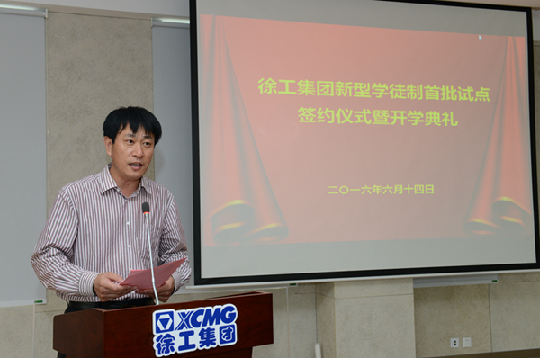 徐工集团党委副书记、教委主任李格致辞,并对试点单位、合作学院、企业导师和学院指导教师、参培学徒提出相关要求