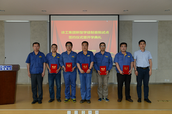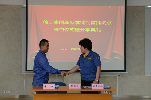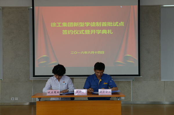 此次仪式,试点合作院校徐工技师学院分别与徐工起重机械事业部、徐工铲运机械事业部、徐工道路机械事业部、徐工挖掘机械事业部、徐工汽车事业部首批五家试点单位签订徐工集团新型学徒制合作协议。